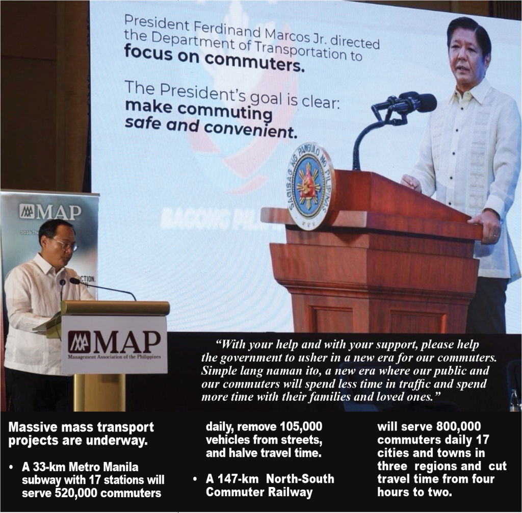 So the Department of Transportation is now implementing massive infrastructure projects, such as the subway, the NSCR, the North-South Commuter Railway, then we have the MRT-7, then we have the existing MRT-3, Line 2, Line 1.